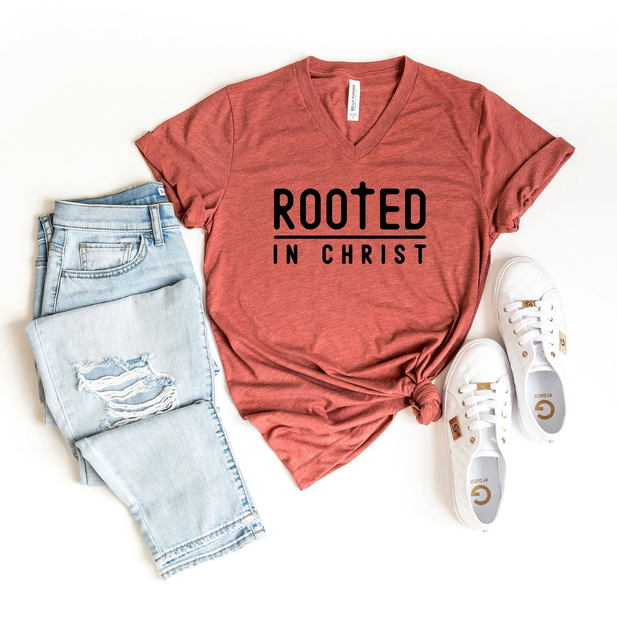 Bella Canvas v-neck "Rooted In Christ" Graphic tee